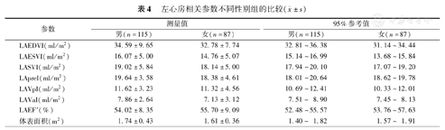 LAEDVI、LAESVI、LASVI、LApreI、LAVpI、LAVaI、LAEF′值在男性组与女性组之间差异无统计学意义(均为P>0.05)(表4)。