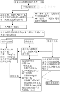 服用NOAC的患者一旦发生出血,可按照欧洲心律学会推荐的方案进行处理(表8)[22]。此外,Ebright等[28]提出的达比加群出血患者的处理策略值得临床参考(图2)。