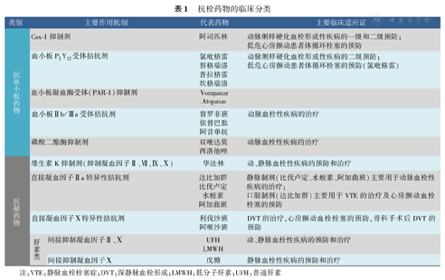 抗栓药物的临床分类