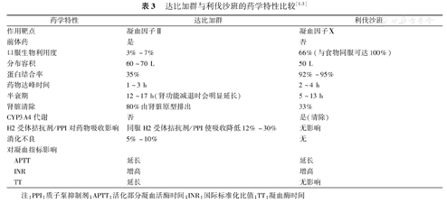 | 药学特性 | 达比加群 | 利伐沙班 | |