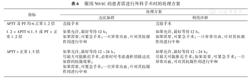 服用NOAC的患者需进行外科手术时的处理方案