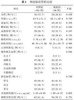 | 项目 | 对照组(101例) | 观察组(98例) | P值 | |