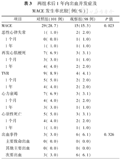| 再发心肌梗死 | 7( 6.9) | 3( 3.1) | ||