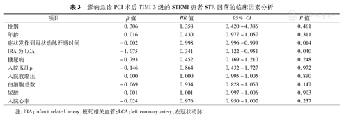 影响急诊PCI术后TIMI 3级的STEMI患者STR回落的临床因素分析