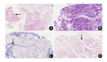 根据病理医生的意见,我们的心肌活检组织样本质量好,可以完成组织学、免疫组化、特殊染色、光镜等检查(图3、图4)。这与其他EMB报道中的结果相似[6,12,13]。在帮助临床医生明确诊断,决定下一步的治疗方案,有积极的临床意义。
