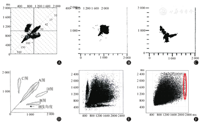 向晋涛等[9,10,11]通过对大量散点图的观察,发现了一些窦性心律吸引子(即散点集形成的几何图形)分离的特殊现象,推测窦房结功能发生了分离,分为横向分离和纵向分离两种。