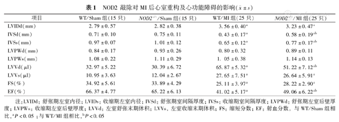 NOD2敲除对MI后心室重构及心功能障碍的影响(