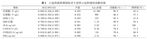 | LDH比值 | 0.702(0.638,0.953) | 0.021 | 1.25 | 90.9 | 56.5 |