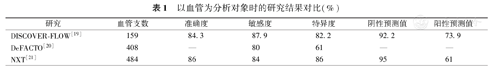 近年随着大数据和人工智能技术的兴起,深度学习的人工智能程序将计算速度和计算机精度进一步提高。首先,人工智能利用多层神经网络等技术对已有的冠状动脉解剖和对应的血流动力学数据库进行深度学习和训练,提取与血流动力学相关的必要的形态特征,掌握冠状动脉血管树的形态特征和对应血流动力学参数之间的联系和规律。学习和训练完成后,输入CCTA测得的解剖形态数据,人工智能就可以很快地推算出相应的血流动力学参数,得到FFR数值[16]。这种方法不需实时计算,所以用时较短,对计算机性能要求也比较低,临床可行性高。目前有多家公司正在研发这种计算方法的软件,包括德国西门子公司的cFFR软件(cFFR,version2.0-3.0)[17]和中国科亚医疗公司的深脉分数(DEEPVESSEL FFR)[18]等,北京安贞医院周玉杰团队的单中心研究结果显示,DEEPVESSEL FFR软件诊断心肌缺血的准确度为89.2%、敏感度为94%、特异度为84%,阳性预测值87%、阴性预测值92%,而每位患者的平均计算时间仅需(120±13)s,大大提高了工作效率[18]。与HeartFlow软件相比,这类新的人工智能深度学习软件对心肌缺血诊断的准确性相似,但明显缩短了计算时间,具有更高的临床可行性,但还需更多的临床试验去证实。