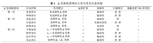 | β受体阻滞剂 | 代表药物 | 作用靶点 | 血管扩张 | 溶解性 | 代谢器官 | 细胞色素2D6异质性 |