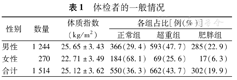 | 性别 | 数量 | 体质指数(kg/m2) | 各组占比[例(%)] | ||
