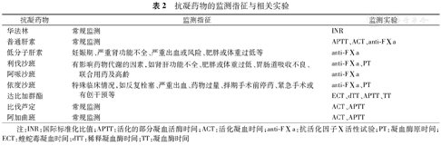 | 抗凝药物 | 监测指征 | 监测实验 |