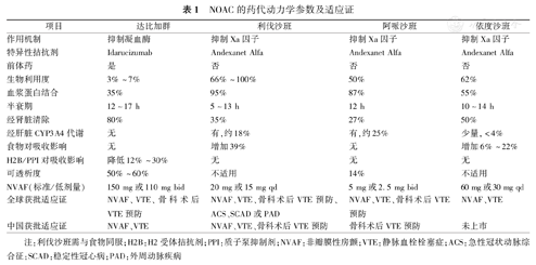 血栓栓塞性疾病在我国老年人中的发病率不断增加,而高龄患者的基础疾病多、心血管危险因素多、合并用药多、依从性差、高出血和缺血风险并存,这无疑是对老年患者规范化抗凝治疗的严峻考验。随着新药的问世,NOAC已然开启了抗凝治疗的新篇章,但其在老年患者的应用仍面临不少挑战。第一,我国仍有很多高风险的房颤患者并未启动抗凝治疗,其主要原因可能在于患者及医生对血栓栓塞危害的认识不足,以及对抗凝治疗增加出血风险的担忧。其实,只要正确掌握适应证、动态评估栓塞及出血风险、综合管理、严密监测,房颤患者抗凝治疗的获益就会远超过其风险。第二,NOAC在房颤患者中的使用比例不高。华法林的药代动力学及药效学受遗传、药物、饮食、各种疾病状态等诸多因素影响,且需频繁监测凝血指标、反复调整剂量,而NOAC克服了华法林的缺点,使用简便,抗栓疗效确切,且更加安全,表1总结了4种NOAC的药代动力学参数及适应证。然而,NOAC价格昂贵,而且需要长期甚至终身服用,不少患者无法负担其高昂费用,相对而言,华法林具有明显的价格优势。如果医患能够共同管理、有效监测,华法林仍然是一线好药。第三,患者的用药依从性。NOAC半衰期短,24 h内即可代谢完全,而对于需要看护的老年患者,如果经常忘记服药或擅自减少用药量反而会增加血栓形成的风险。因此,必须加强宣教,保证患者按时服药,以免因药效下降而发生血栓栓塞。第四,个体化用药原则。高龄患者的脏器功能会逐渐衰退,而肝肾功能不全会导致药物经肝代谢能力下降、肾排泄能力减少,从而引起药物过量或蓄积。因此,高龄患者建议予低剂量NOAC,同时根据肝肾功能调整药物剂量[6]。此外,对于房颤特殊人群(如行PCI治疗等),临床医生需要充分评估缺血与出血风险,并考虑获益风险比,从而为高龄患者提供最佳的治疗方案。