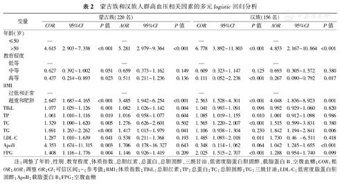 蒙古族和汉族人群高血压相关因素的多元logistic回归分析