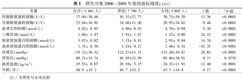 | 谷氨酸氨基转移酶(U/L) | 23.04±16.91 | 24.08±11.06 | 20.93±24.81 | 9.46 | <0.0001 |