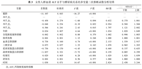 女性人群血清ALT水平与糖尿病关系的多变量二次推断函数分析结果