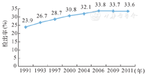 2017年美国AHA/ACC等11个专业协会联合发布的高血压诊治指南将血压在130~139/80~89 mmHg的范围定义为高血压1期。我国18岁及以上成人中,血压在130~139/80~89 mmHg范围的人群占23.2%,主要为18~54岁的中青年。在25~34岁人群中,血压在130~139/80~89 mmHg范围的人群达到26.7%。随着年龄增长,许多高血压前期人群发展成高血压,导致高血压患病率快速增加,45~54岁的人群中高血压患病率已达30%,是25~34岁人群的5倍。从1991至2015年3次全国性调查数据显示,中青年处于高血压前期的比例明显增加(图3)。这些人群是发生高血压最重要的高危人群。两项大型前瞻性研究均显示,高血压前期是高血压发病最重要的危险因素。一项对我国35~64岁基线无高血压人群15年间高血压发生风险的研究显示,收缩压在130~139 mmHg范围的人群,15年间73.2%发展为高血压,该项研究根据多个高血压发生风险因素建立的预测积分中,收缩压130~139 mmHg水平具有最高的危险积分因素,明显高于肥胖、家族史甚至年龄对高血压发生风险的影响,舒张压80~89 mmHg水平也对高血压发生风险有明显的影响,更重要的是,处于高血压前期的人群已经有明显升高的心血管病发病风险[7]。2018年一项长期队列研究结果显示,我国在15年间,血压(130~139)/(80~89)mmHg的人群,65%发展为高血压;在调整所有其他影响因素后,该血压范围的35~59岁中青年人群,20年间发生心血管急性事件的风险较血压<120/80 mmHg人群高78%,心血管病死亡风险高150%。在中青年人群中,26.5%的心血管病死亡和13.4%的心血管病事件可归因于此范围血压增高。这些研究提供的科学证据清楚地指明高血压前期是我国中青年人群高血压预防和心血管病预防极其重要的窗口期和目标[7]。必须指出的是,随着我国国民期望寿命继续增加和老龄化加剧,疾病谱已经开始发生令人不安的变化,老年痴呆在死因中的排名已由1990年的第24位上升为2013年的第7位。在目前全球居民期望寿命最长的日本,老年痴呆已在死因中排第2位。血压增高对小血管的损害是老年痴呆发生的重要危险因素,更早期的血压控制对于早期血管保护和已经来临且即将加速的老年痴呆负担的预防无疑也非常重要。