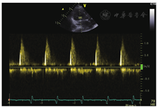 可见心尖两腔切面二尖瓣口舒张期血流频谱呈单峰