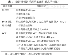 近年来涌现出的腔内影像学技术,如血管内超声(intravascular ultrasound,IVUS)、近红外光谱(near infrared spectroscopy,NIRS)、光学相干断层显像(optical coherence tomography,OCT)以及一些尚在开发阶段的技术(NIRS-IVUS、OCT-NIRS等)可一定程度地在体评估易损斑块[6],其中OCT被认为是评估斑块成分和形态最准确的手段。