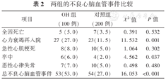 | 总不良心脑血管事件 | 53(53.0) | 54(27.0) | 16.053 | <0.001 |