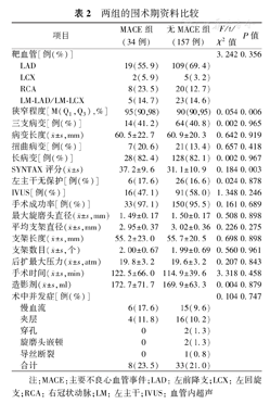 | 项目 | MACE组(34例) | 无MACE组(157例) | t/χ2值 | P值 |