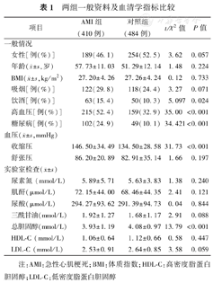 | 项目 | AMI组(410例) | 对照组(484例) | t/χ2值 | P值 | |