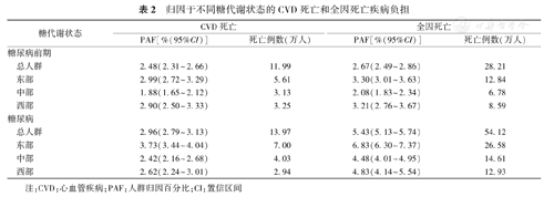 分析中国不同地区糖代谢状态的归因死亡风险和疾病负担。
