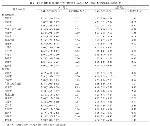 14个抽样省份归因于不同糖代谢状态的CVD死亡和全因死亡疾病负担