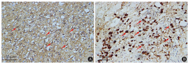 A:IgG+浆细胞(IHC,×400);B:IgG4+浆细胞(IHC,×400)