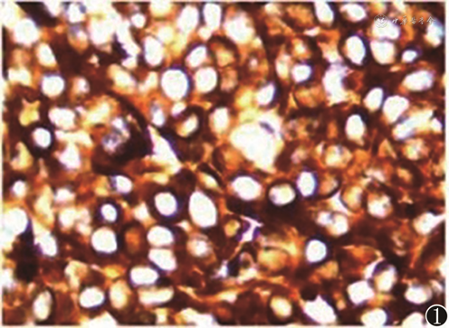 患者女,90岁,因“发现左乳肿物及乳晕区赘生物1个月”入院。查体见左乳外下象限可触及1个3 cm质韧肿物,边界欠清晰,活动度差。左乳晕皮肤可见1个1.5 cm质软赘生物,色暗红。乳腺彩超示左乳低回声团,形态欠规则,边界尚清。钼靶示左乳不规则高密度肿物影,边缘模糊,肿物内可见群样分布的细小多形性钙化影。胸部CT检查见双肺可疑转移结节。在局麻下行左乳肿块切除术+左乳乳晕赘生物切除术。术中见左乳肿物色灰,质韧;乳晕区赘生物高出皮面0.5 cm,色灰红,质软。术后病理报告黑色素瘤,Clark分级Ⅳ级。光镜下见肿瘤细胞呈圆、卵圆形,核深染,核浆比大,核分裂象多见,部分区域可见黑色素颗粒(图1)。免疫组化检查示:HMB45(+),MelanA(+),S-100(+),Ki67指数(20%),C-erbB2(-),ER(-),PR(-)。病理诊断为左乳原发性恶性黑色素瘤。术后给予Pd-1单克隆抗体靶向治疗,患者于术后5个月因肺转移死亡。