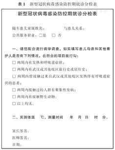 仅限1名家属随行。对拟随行家属进行新型冠状病毒感染流行病学及病史排查,测量实时体温,完整填写"新型冠状病毒感染防控期就诊分检表"(表1),无异常者方可同行。