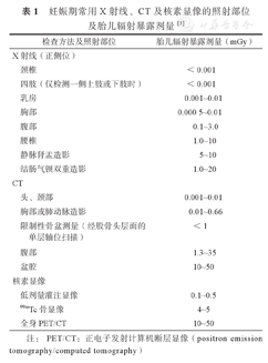 妊娠期常用X射线、CT及核素显像的照射部位及胎儿辐射暴露剂量[3]