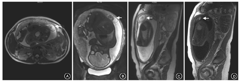 本文报告了一例胎盘畸胎瘤病例。该孕妇30岁,孕33周+超声发现胎盘胎儿面异常回声,初步诊断为胎盘畸胎瘤,MRI检查提示胎盘畸胎瘤可能。患者于孕40周+4阴道分娩,新生儿未见明显异常;产妇产前及产后无异常临床表现。肉眼观察胎盘边缘可见一光滑椭圆形的被覆皮肤结节,病理结果提示成熟型囊性畸胎瘤。胎盘畸胎瘤的起源尚不明确,无明显临床症状,对孕妇及胎儿多无不良影响。超声与MRI联合诊断对产前明确瘤体性质起重要作用,而确诊本病主要依靠产后病理检查。