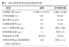 HIV阳性患者实验室检查结果