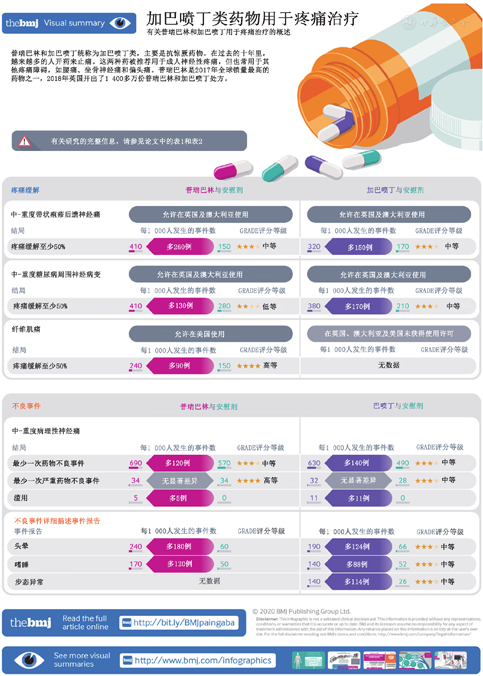 另一项关于神经病理性疼痛药物治疗的系统综述报告了加巴喷丁类药物的类似作用2。然而,各种剂量的治疗效果混杂在一起可能会高估治疗效果,尤其是研究质量存在差异的情况下。