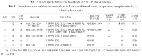 General conditions and disease characteristics in 5 patients with novel coronavirus pneumonia complicated with pulmonary hypertension