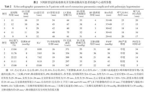 Echocardiographic parameters in 5 patients with novel coronavirus pneumonia complicated with pulmonary hypertension
