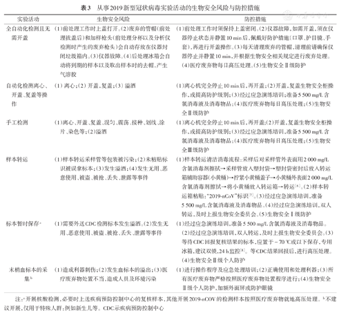 从事2019-nCoV实验活动的生物安全风险与防控措施,见表3。