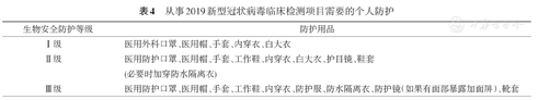 从事2019-nCoV临床检测项目需要的个人防护见表4。
