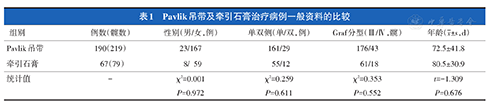 Pavlik吊带及牵引石膏治疗病例一般资料的比较