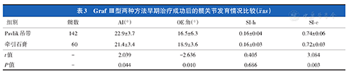 Graf Ⅲ型两种方法早期治疗成功后的髋关节发育情况比较(