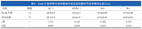 Graf Ⅳ型两种方法早期治疗成功后的髋关节发育情况比较(