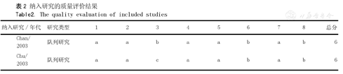 | Chan/2003 | 队列研究 | a | a | b | a | a | b | a | b | 6 |