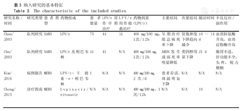 研究纳入标准:研究纳入标准:(1)研究为比较洛匹那韦/利托那韦与安慰剂/标准治疗方案用于严重急性呼吸综合征(SARS)、中东综合征(MERS)患者;(2)临床结局进行评价临床队列研究和病例-对照研究;(3)诊断根据WHO公布的确诊或疑似SARS或MERS病例的诊断标准,但不排除流行初期诊断为感染的病例;(4)对同一研究多次发表的报告,我们从提供最详细信息的报告中提取资料;(5)指南性文件,包括:临床指南、国家级学会/团体的专家共识。