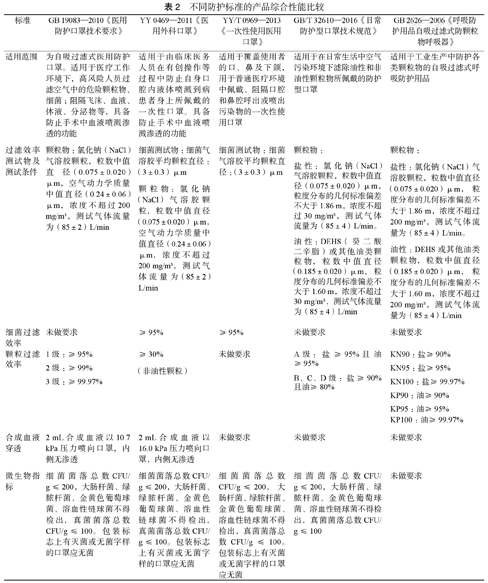 根据我国国家标准,各类口罩的综合性能见表2。