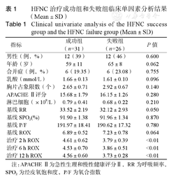 HFNC治疗成功组和失败组临床单因素分析结果(Mean±SD)