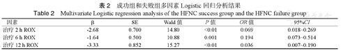 Multivariate Logistic regression analysis of the HFNC success group and the HFNC failure group