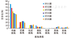 从就业单位的类别看,截至2016届的所有毕业生中,53.1%的规培医师在市级医院就业,22.0%的人员在区级医院,10.1%的人员在社区卫生服务中心就业。