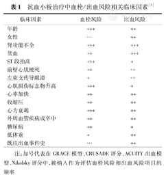 关于血小板计数和形态学检查,一般而言,当血小板重度减少时(<50×109/L)发生出血事件的风险较大[13]。中国《急性冠状动脉综合征抗栓治疗合并出血防治多学科专家共识》认为,血小板计数<100×109/L或血小板计数较基础值下降50%,可酌情全部或依次停用可能导致血小板减少的抗栓药物;血小板计数<50×109/L的患者应综合判断患者临床情况、血栓形成和出血风险,停用抗血小板治疗[14]。但需要注意的是,急性心肌梗死发生后常见血小板有所降低。有荟萃分析表明约有5.4%的ACS患者血小板<150×109/L[15],但同时伴有血小板体积增大、血小板颗粒增多、活性增强,有着更高的血栓事件风险[16,17]。一些特殊的疾病,如肝素诱导的血小板减少症(HIT)、抗磷脂综合征(APS)、血栓性血小板减少性紫癜-溶血尿毒综合征(TTP-HUS)、阵发性睡眠性血红蛋白尿症(PNH)、恶性肿瘤等,表现为血栓形成及血小板消耗性减少,这些患者应关注血栓事件风险而非出血风险。因此,当出现血小板计数减少时,积极寻找其原发病因,对于继发于急性心肌梗死后的血小板减少应在安全的血小板范围(>50×109/L)内进行抗血小板治疗。在治疗过程中,注意观察患者服药后的临床表现(出血症状、胃肠道反应等),借助出血风险的CRUSADE评分等动态评估抗血小板治疗的风险,及时调整抗血小板药物。