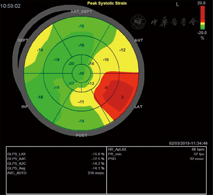 注:GLPS整体长轴峰值应变;LAX心尖长轴;A4C心尖四腔切面;A2C心尖两腔切面;Avg平均;AVC_AUTO自动获取主动脉瓣关闭时间;HR心率;FR帧频;PSD达峰时间离散指数